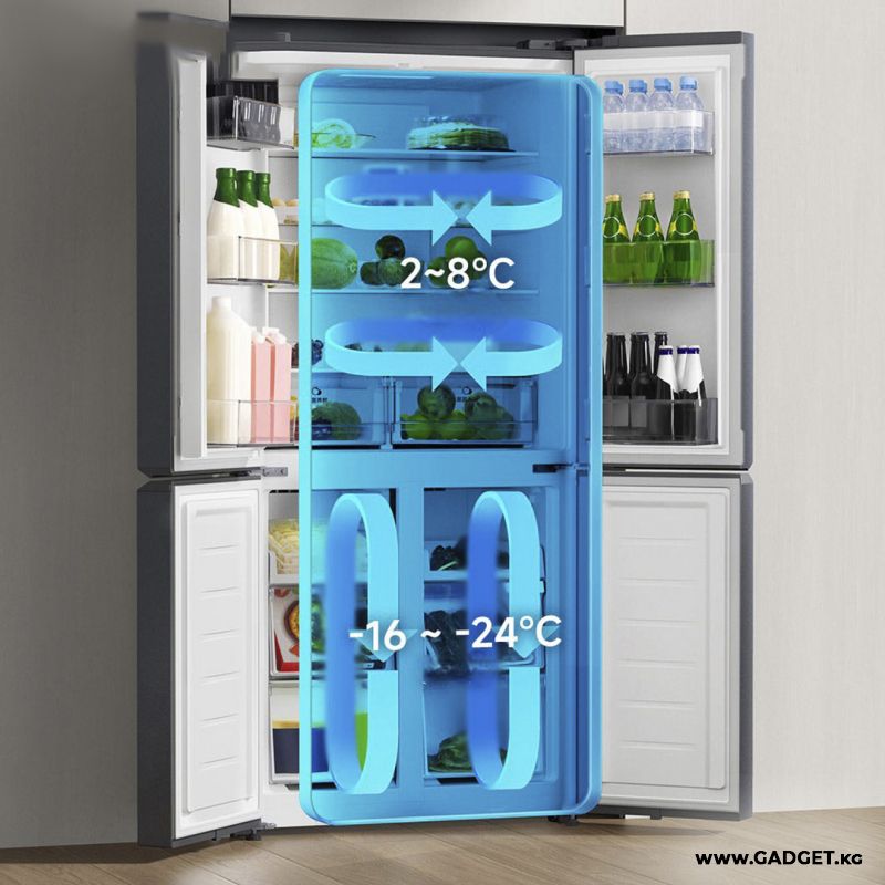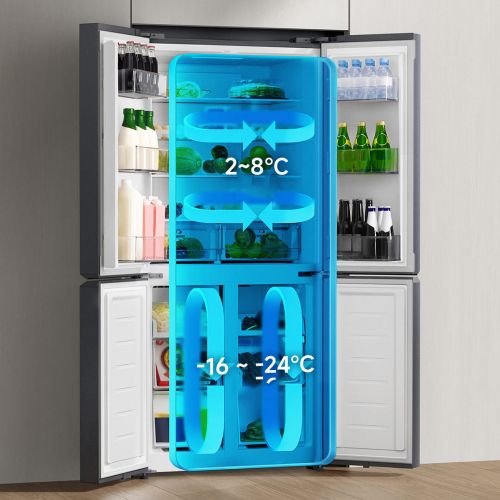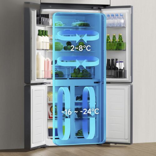 Эң жаңы аба менен муздатуу технологиясы кол менен муздатуу жана эритүү маселесин унуттурат! Чыгымдарды өзгөртүү жана өзгөрмө кубаттуулуктагы компрессор энергияны үнөмдөп, жогорку жашоо сапатынан ыракат алууга мүмкүндүк берет. Холодильниктеги күмүш иондору менен антибактериалдык модуль бактерияларды жок кылуу үчүн натыйжалуу каражат болуп саналат. Ал холодильниктеги жыт молекулаларын сиңирип, азыктарды өзүнүн даамын жана жытынын сактоосуна мүмкүндүк берүүчү жаңы мейкиндикти түзөт.