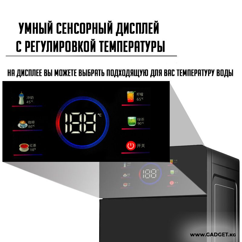 - Тийүүчү дисплей: Заманауи тийүүчү дисплей керектүү суу температурасын оңой эле тандоого мүмкүнчүлүк берет. Интуитивдик башкаруу кулерди колдонууну жөнөкөй жана ыңгайлуу кылат.