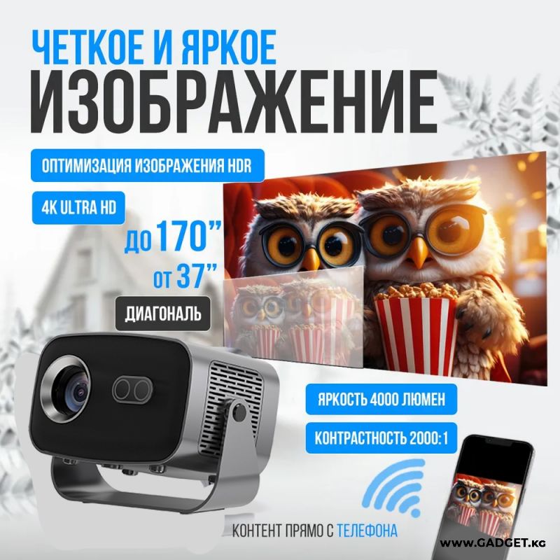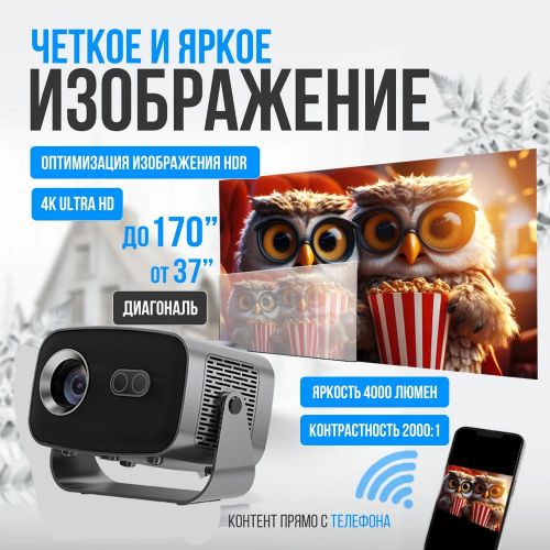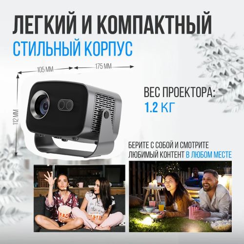Мини проектор оснащен передовой технологией повтора экрана (Mirascreen), и Bluetooth что позволяет вам смотреть любимые фильмы, сериалы, мультфильмы, играть в игры и просматривать фото прямо с вашего смартфона или планшета. Благодаря операционной системе Android и поддержке Wi-Fi, у вас будет доступ к множеству приложений, видеохостингов и онлайн-кинотеатров.