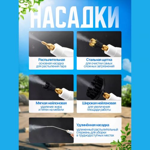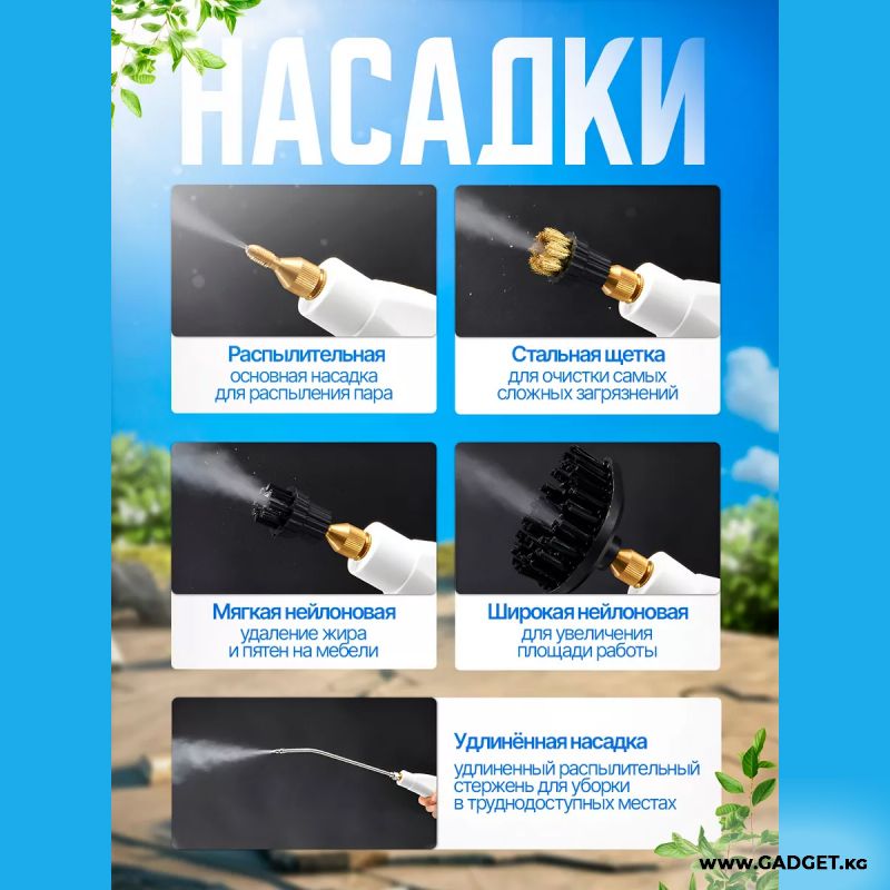Пароочиститель Steam Cleaner TC-SC-001 2500 Вт кубаттуулугу менен насадкалар менен - бул заманбап, көп функциялуу прибор, ал дезинфектор, айнек тазалагыч, бууланган швабра, плитка жана башка техникалар үчүн тазалагычты бириктирет. Жылуу буулоо туруктуу булганууларды жумшартат жана химиялык тазалоочу каражаттарды колдонбостон жоюуга мүмкүндүк берет. Мындай тазалоо ыкмасы экологиялык жактан таза. Жылуу буулоо беттерди дезинфекциялоо үчүн кызмат кылат, бактерияларды жана грибокторду өлтүрөт, ал эми комплекттеги көптөгөн насадкалар кыйын жеткиликтүү же катуу булганган беттерди тазалоого жардам берет.