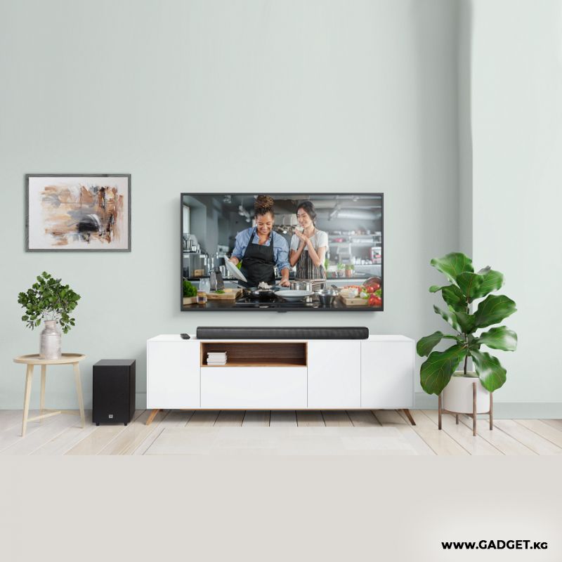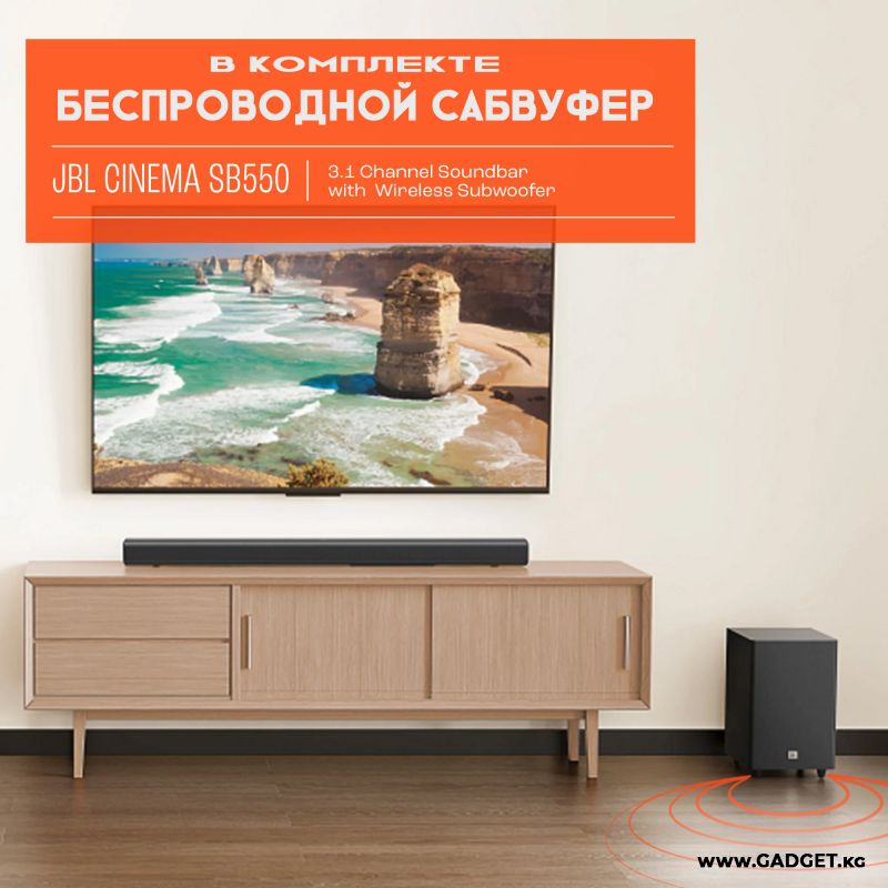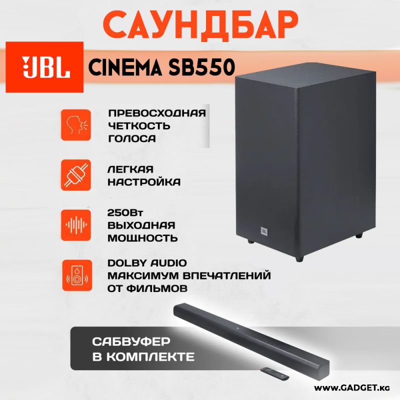 Сиздин үйдөгү мультимедиялык көңүл ачуу борборунун үн сапатын 3.1-каналдуу JBL Cinema SB550 акустикалык системасы менен жакшыртыңыз. Компакттуу саундбар корпусунда 250 Вт күчтүү үн жана Dolby Audio колдоо бар, ал эми 5.25 дюймдук беспроводной сабвуфер терең жана күчтүү бас менен камсыздайт. Эми фильмдерди көрүү дагы кызыктуу болот. Бөлүнгөн борбордук каналдын жардамы менен телевизор жана кинонун диалогдору кристалдай таза угулат. Жүйө орнотууда жана жөндөодо абдан оңой. Кабел аркылуу телевизорго HDMI ARC же оптикалык киргизүү аркылуу туташууга болот, ал эми Bluetooth аркылуу сүйүктүү музыкаңызды же подкасттарды каалаган шаймандан ойноп берүүгө болот.