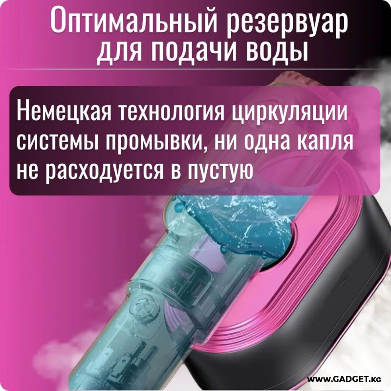 Биздин отпаривательдин дагы бир артыкчылыгы – анын жеңилдиги жана эргономикасы. Устройство колдо кармоого ыңгайлуу, колдонуу үчүн чоң күч талап кылбайт. Узун шнур жана 360 градуска айлануучу башы эркин маневр жасоого мүмкүндүк берет, жеткиликтүү эмес жерлерге жетүүнү камсыз кылат.