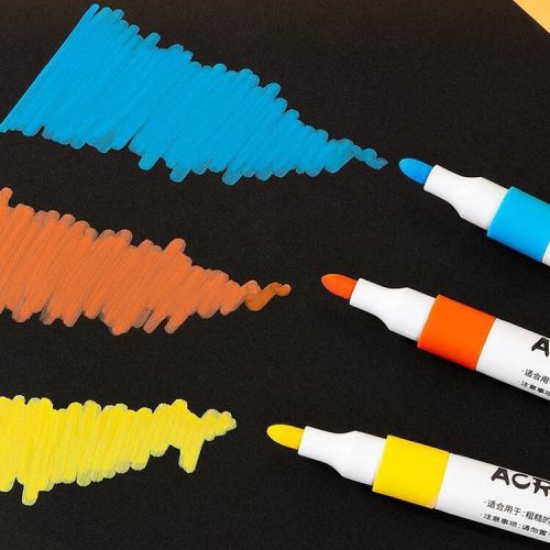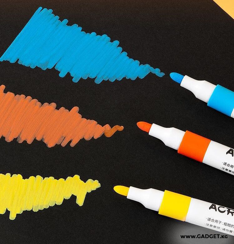 - Акрилдүү маркерлер: Акрилдүү маркерлер ар кандай беттерде, мисалы, кагаз, картон, айнек, металл жана керамикада сүрөт тартуу үчүн идеалдуу. Сууга чыдамдуу жана тез кургатылган чернилалар узакка созулуучу жана жаркын искусство чыгармаларын түзүүгө мүмкүндүк берет.