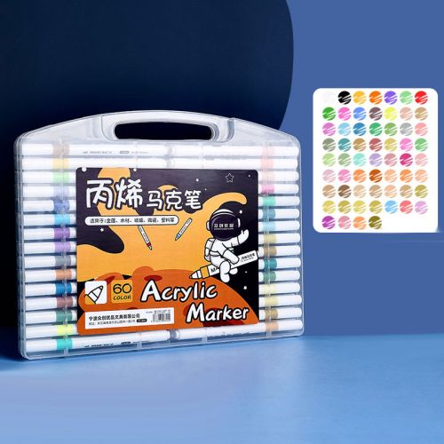 - 60 маркер ар кандай түстөр менен: Наборго 60 жаркын акрилдүү маркер кирет, бул ар кандай чыгармачылык идеяларды ишке ашыруу үчүн бай палитраны камсыз кылат. Ар бир маркердин түсү бай жана биркелки колдонулушу, сүрөт тартууну кызыктуу жана жагымдуу процесс кылат.
