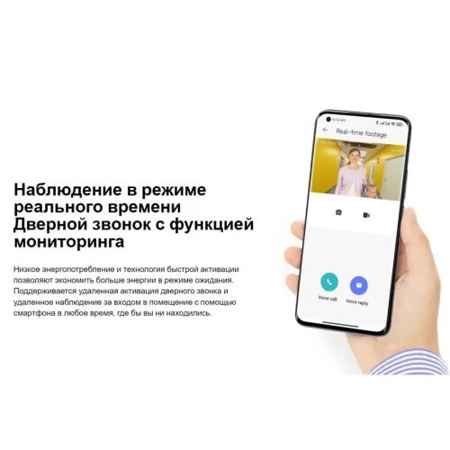 С помощью Xiaomi Smart Doorbell 3S вы можете вести разговор с посетителем через приложение на вашем смартфоне. Вам не нужно выходить из дома, чтобы узнать, кто пришел, или чтобы поговорить с курьером.