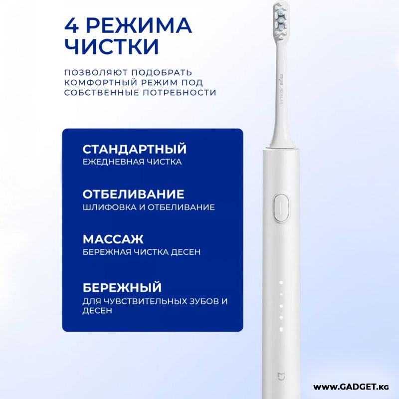 4 режима работы подойдут для самых разных типов зубов. Стандартная очистка подойдет для большинства пользователей, режим бережной чистки позаботится о чувствительных зубах. Дополнительно есть режим массажа десен и отбеливания/полировки.