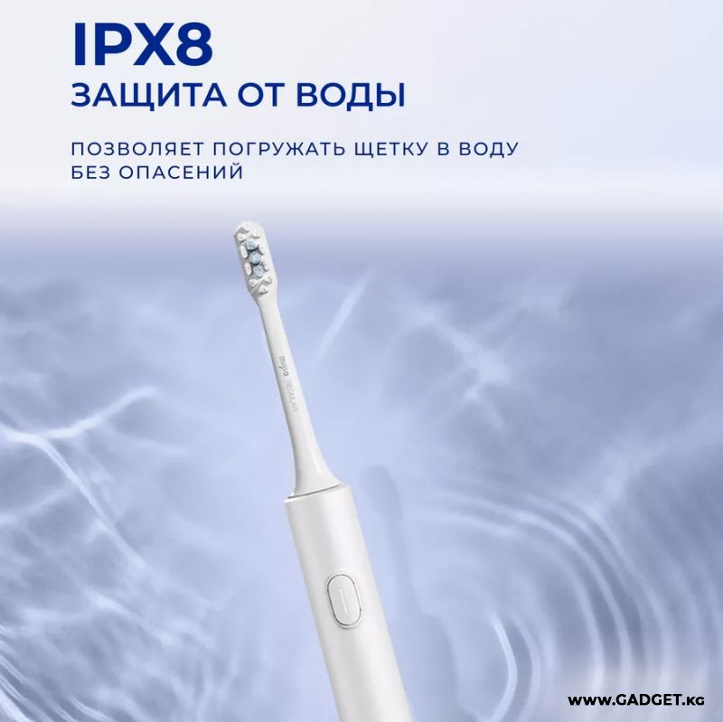 Двуслойная водонепроницаемая конструкция с защитой IPX8 позволяет погружать щетку в воду без опасений