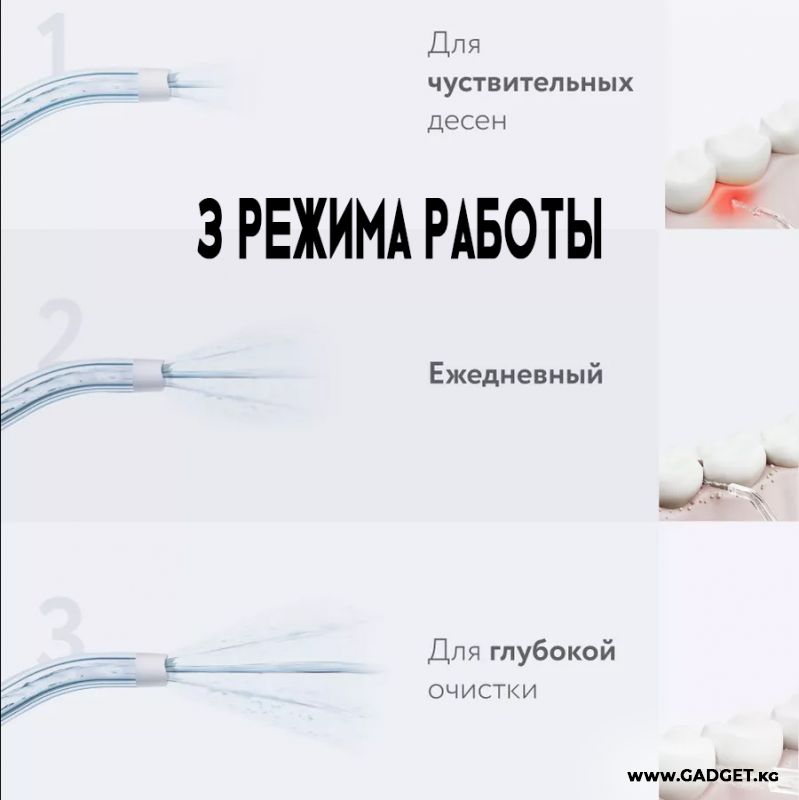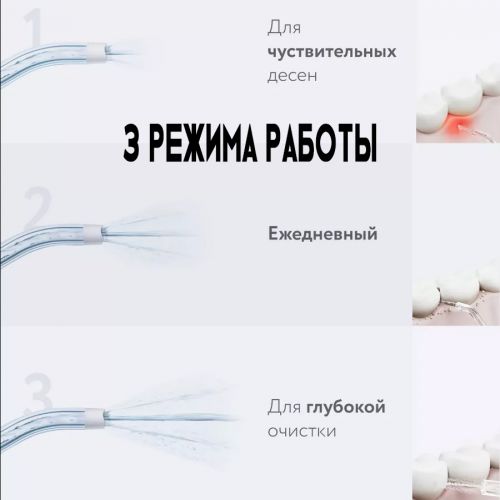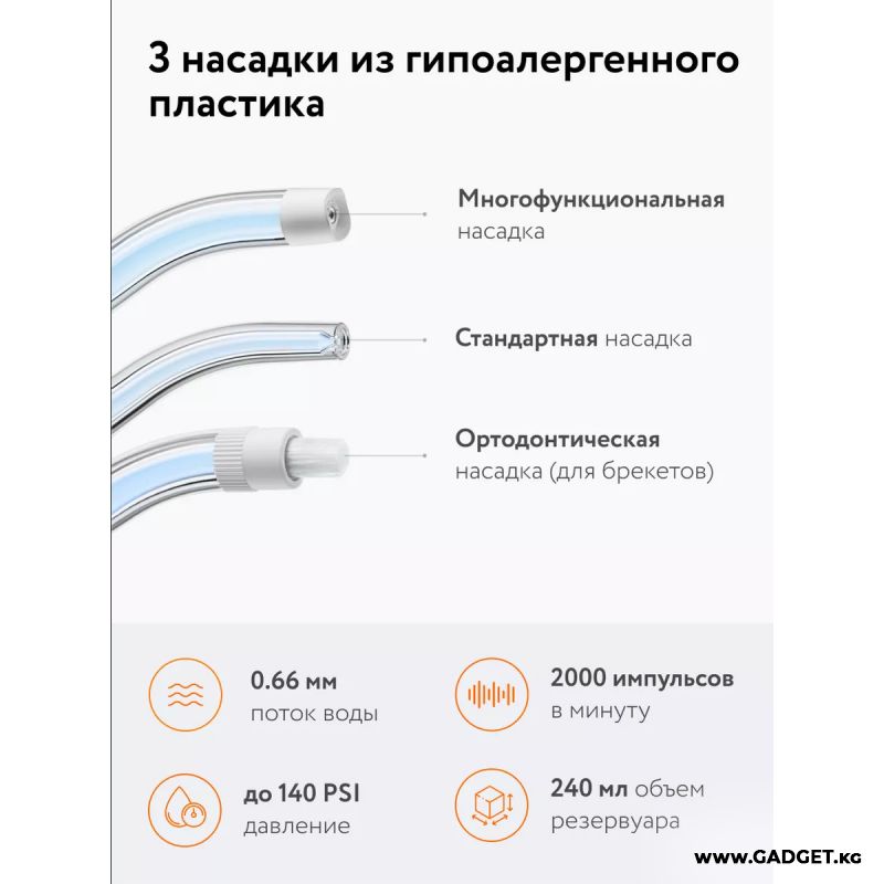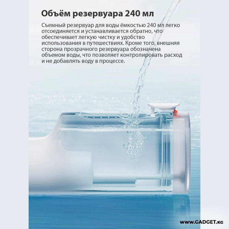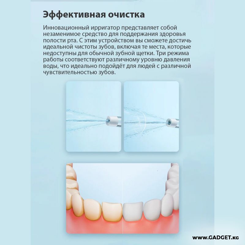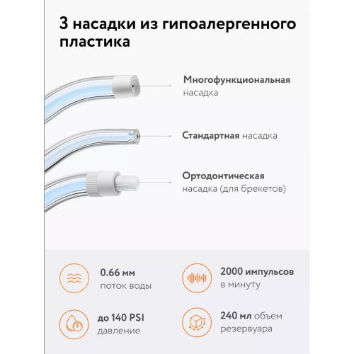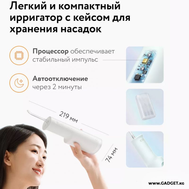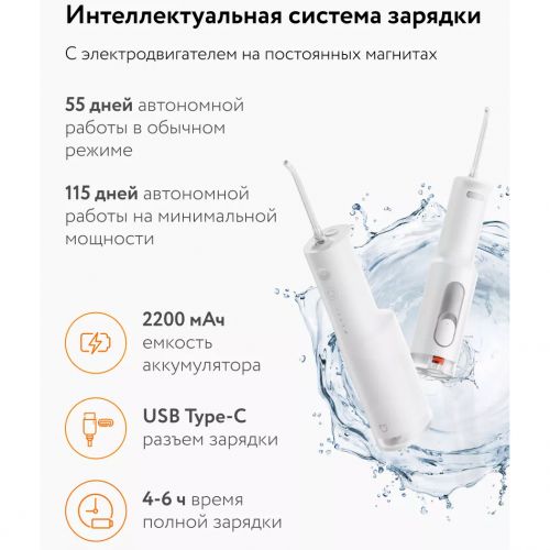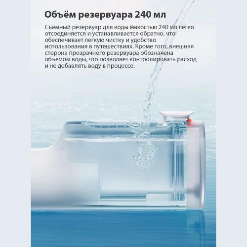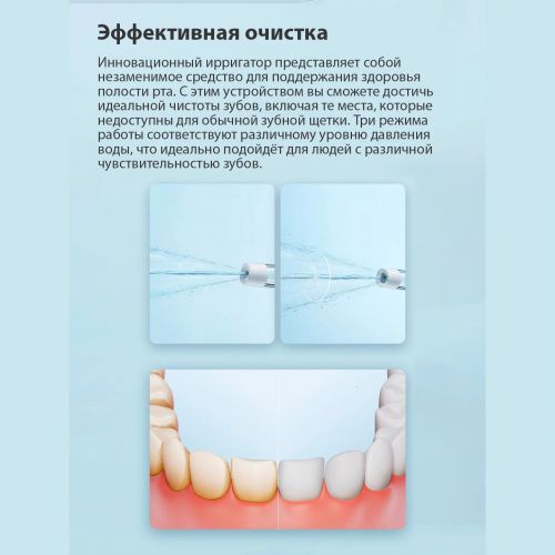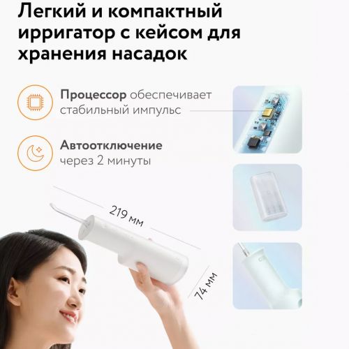 Компактный размер и удобство переноски делают ирригатор Xiaomi Mijia Electric Teeth Flosser F300 идеальным для использования в любом месте и в любое время. В комплекте идут три разных типа насадок, которые позволяют настроить устройство под индивидуальные потребности.