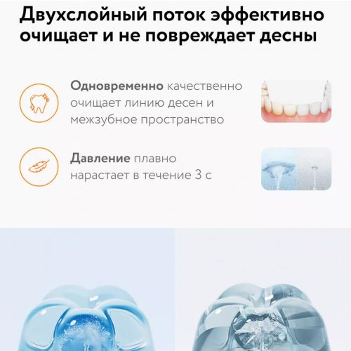 Сочетая в себе продвинутые технологии и эргономичный дизайн, ирригатор обеспечивает эффективное удаление зубного налета и грязи. Устройство оснащено новым умным электродвигателем на постоянных магнитах, который позволяет создавать давление струи до 140 psi и генерировать 2000 импульсов в минуту. Такая мощь дает возможность проникать глубоко между зубами и очищать даже труднодоступные места без вреда для здоровья.
