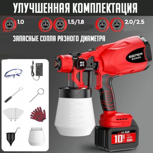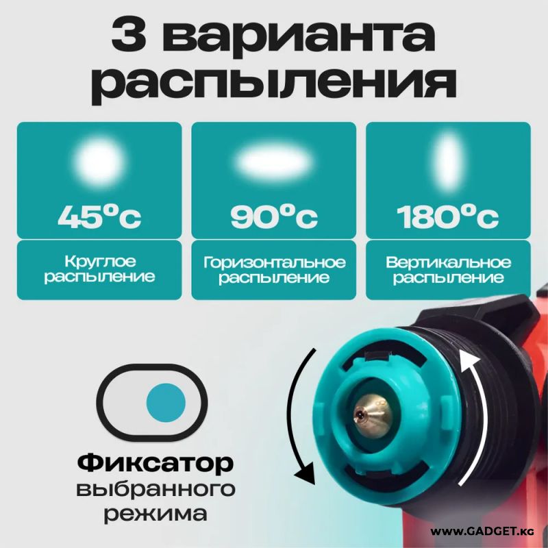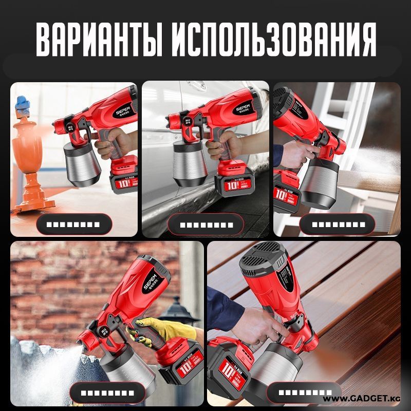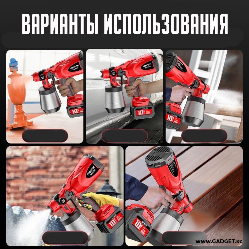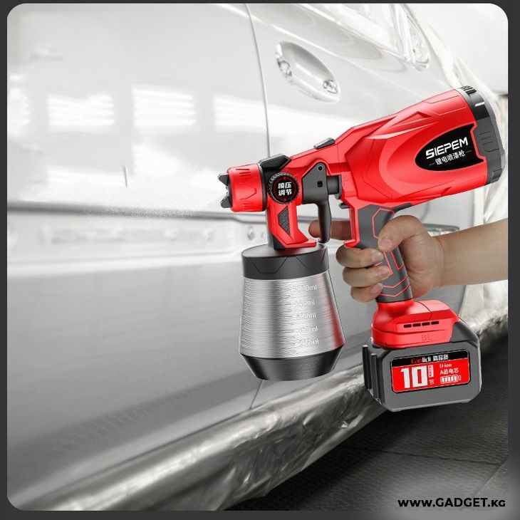 Сиз боёкту дубалдарга, унааларга жана 심지 심지ге оңой эле чачып коюуга мүмкүнчүлүк аласыз. Бул аспап аккумулятордук система менен жабдылган, бул сизге тармакка туташпастан кыймылдоо эркиндигин берет. Суюктуктун берилиши жөнгө салынат, бул катмардын керектүү жоондугун камсыз кылат.
