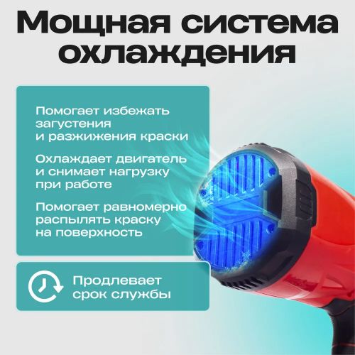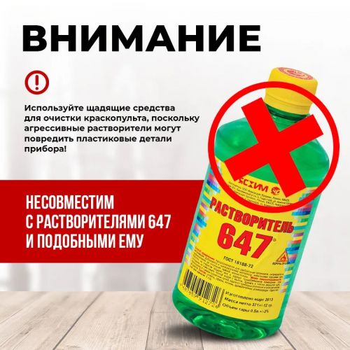 Бул боёк чачкычтын өзгөчөлүгү - анын эргономикалык колдонуучу колдонуусу, бул процесстин бардык учурунда ыңгайлуу жана комфорттуу иштөөнү камсыз кылат. Аккумулятордун кубаттуулугу 2500Mah жана 21 В напряжениеси кайра заряддоону талап кылбай узак убакыт иштөөнү кепилдейт. Резервуардын төмөнкү жайгашуусу боёкту толтурууну жана аспапты иш бүткөндөн кийин тазалоону жеңилдетет.