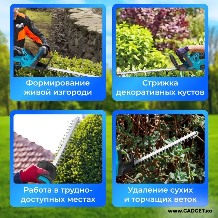 Сиздерге бакчаңызда пайдалануучу маанилүү жардамчы болгон аккумулятордук кусторезди сунуштайбыз. Бул күчтүү түзүлүш кустарды жана чөптөрдү оңой кесүү үчүн иштелип чыккан, участокту минималдуу күч-аракет менен идеалдуу абалда кармоого мүмкүндүк берет. Аккумуляторлордун негизинде иштеген бул инструмент сизге толук эркиндикти камсыз кылып, кошумча зымдардан жана электр тармагына туташуу зарылдыгынан куткарат.