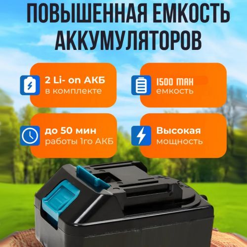 Эки 1500 мАh кубаттуулуктагы аккумулятор менен сиз узак жана натыйжалуу иштей аласыз, разряд болбойт. Бул кусторезди чоң участокто да, кичинекей бакчаларда же дачаларда да иштөө үчүн мыкты тандоо кылат. Анын жеңил жана эргономикалык дизайны колдонууда максималдуу комфортту камсыз кылат, ал эми ыңгайлуу колдору узак убакыт бою чарчабай иштөөгө мүмкүндүк берет.