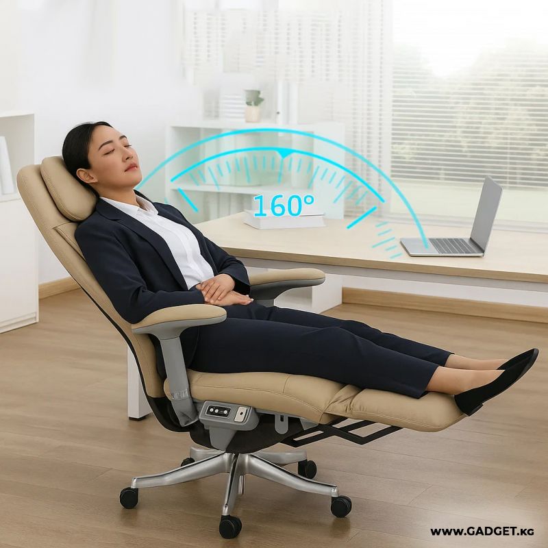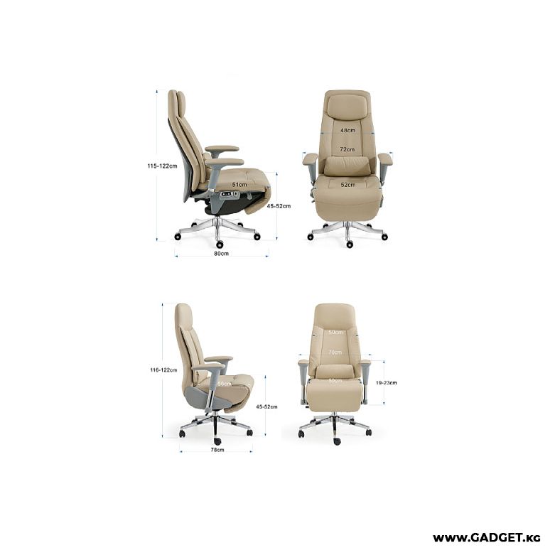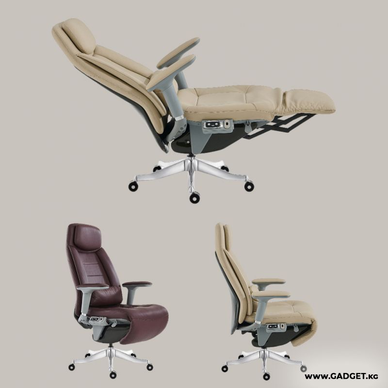 Кресло жогорку сапаттагы экокожодон жасалган, ал өзүнүн бекемдиги жана узак мөөнөттүү колдонулушу менен айырмаланат. Электрондук жөндөө функциясы менен аркасы жана оттоманкасы аркылуу креслоңузду өзүнүн анатомиялык өзгөчөлүктөрүнө жана каалоолоруна ылайыкташтыра аласыз, бул омуртка жана булчуңдарга жүктөмдү туура бөлүштүрүүгө жардам берет.