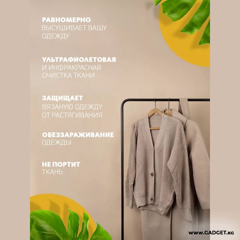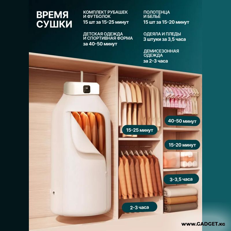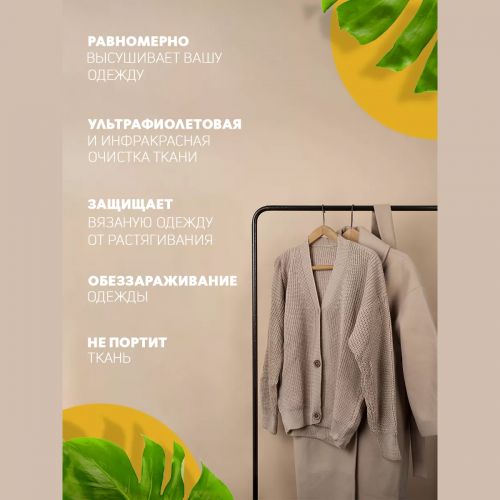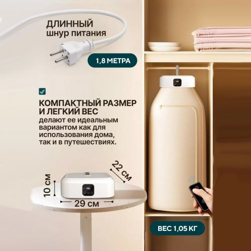 Это портативное устройство складывается в небольшую сумку, позволяя сушить всю вашу одежду где угодно - дома, на даче или во время путешествия. Легко помещается в любой уголок комнаты или даже встроенный шкаф, не занимая много места. Наша электросушилка – ваш надежный спутник в борьбе с влажной одеждой.