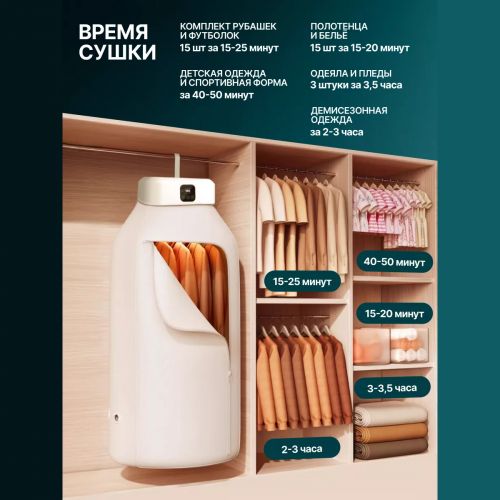 Складная и раскладная конструкция этой электросушилки делает ее удобной и компактной, что позволяет легко хранить ее даже в маленьком помещении или в детской комнате. Благодаря своему мини-размеру, эта электрическая сушилка идеально подходит для небольших квартир, студий, а также для использования в поездках. Вы сможете повесить свою бельевую сушку на шкаф, навесную или подвесную стойку, что сэкономит пространство и сделает процесс сушки максимально удобным.