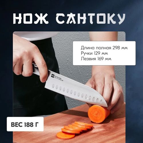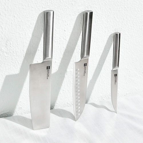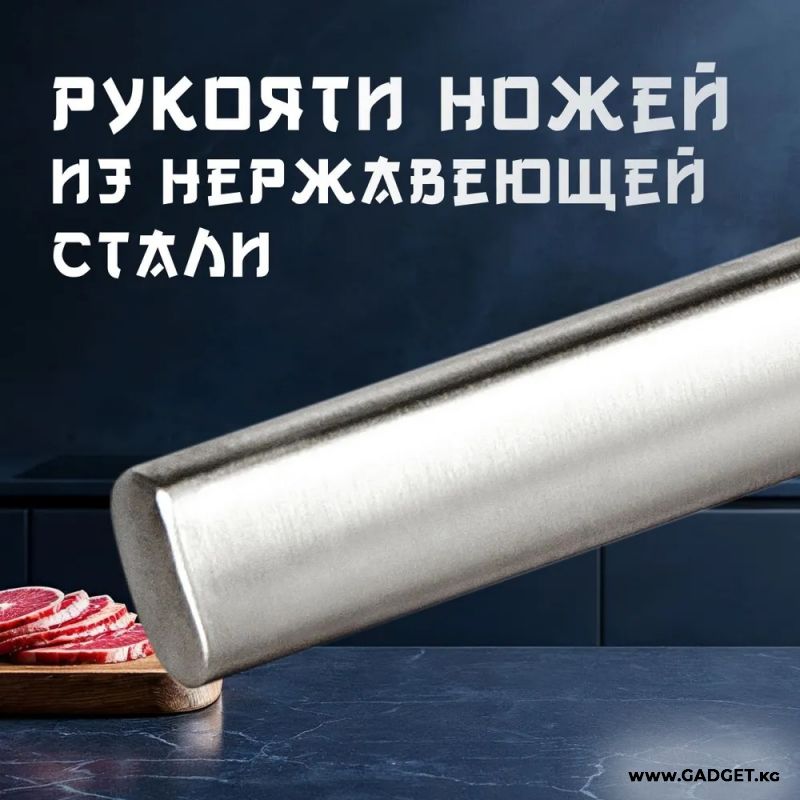 HU0095 топтому шеф-нож сантоку универсалдуу, фигуралык кесүү үчүн слайсер нож, ошондой эле жашылчаларды кесүү үчүн колдонулушу мүмкүн; ошондой эле комплектте этти бөлүү үчүн нож, эт жана жашылчалар үчүн кайчы, жана дагы нождор үчүн болоттон жасалган подставка бар. Жогоруда аталган кухондук жабдыктар сизге эң жөнөкөй тамактар үчүн да, жаңы рецепттерди үйрөнүү үчүн да керек болот.