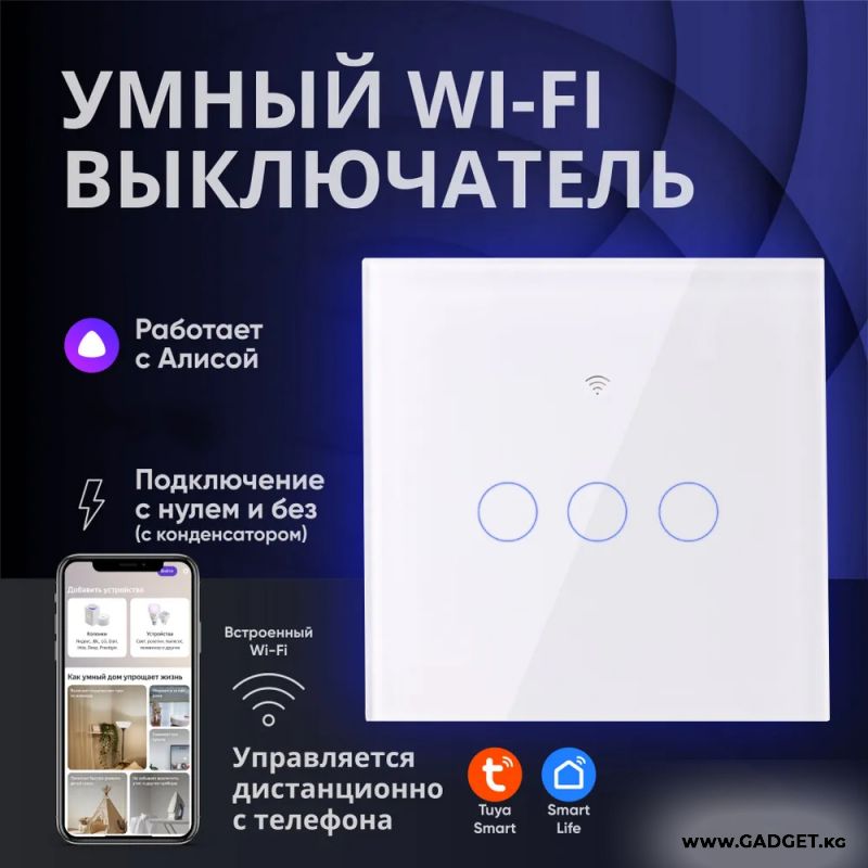 Умный сенсордук жарык өчүргүч Smart Switch WiFi Үчөө