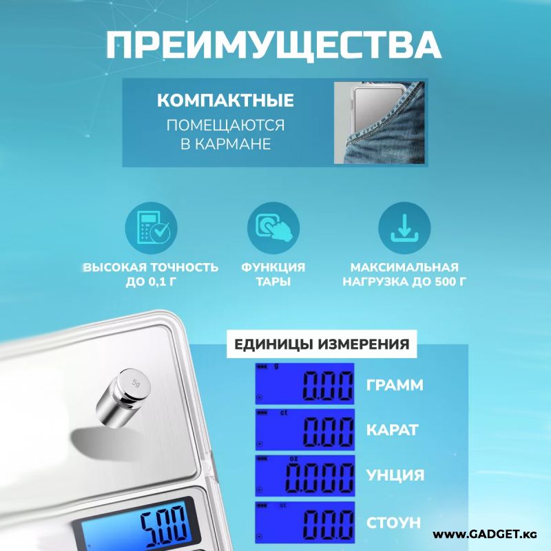 Автоматтык калибровка аркылуу ±0,01 тактык менен жогорку тактыкта салмактоо кепилденет. Салмактын өлчөмүн грамм, карат, гран жана унциядан тандай аласыз. Весынын платформасы жогорку сезгичтикке ээ, бул эң кичинекей көлөмдөрдү же жогорку тактыкта буюмдарды салмактоого мүмкүндүк берет.