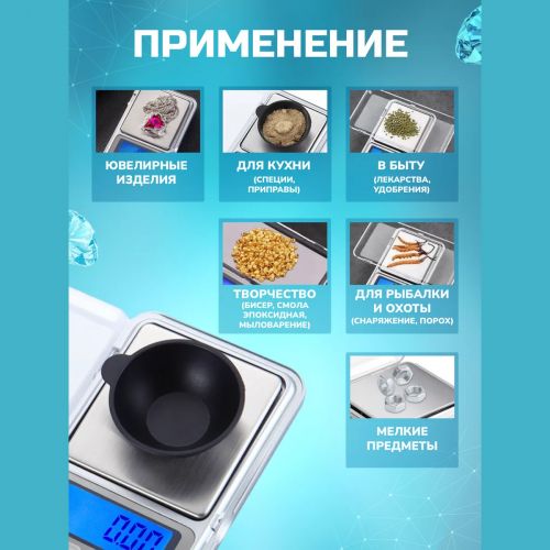 Весы идеалдуу түрдө ювелир, фармацевт, лаборатория кызматкери, илимий изилдөөчү, коллекционер жана үй чарбасында колдонууга ылайыктуу. Бул весы ар кандай буюмдарды, порошокторду жана суюктуктарды 300 г чейин салууга керектүү бардык функцияларга ээ.