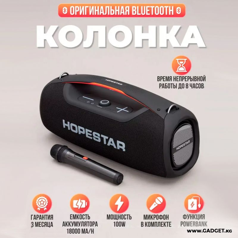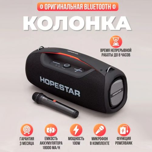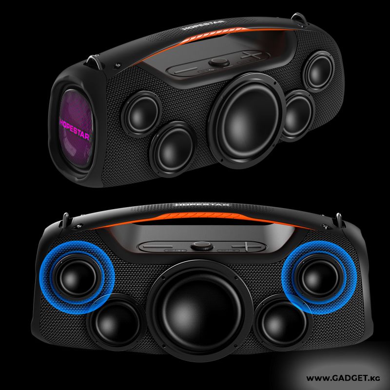 Портативдик акустикалык стерео колонка Hopestar A60 - бүгүнкү күндө өндүрүүчүнүн линиясынын эң күчтүү, сапаттуу жана баска толтурулган Bluetooth колонкасы. Ал жалпы 100W кубаттуулукта мыкты, күчтүү жана толук үн чыгарат.