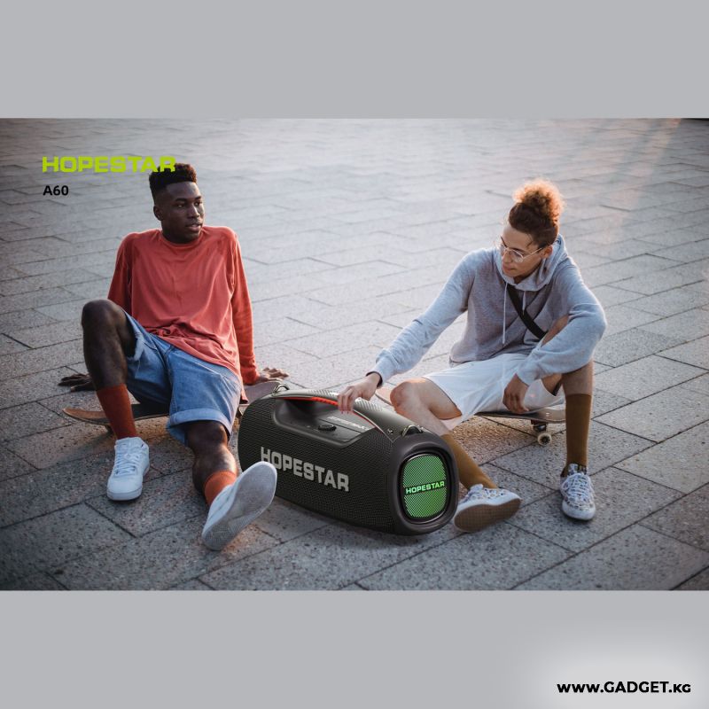 Портативдик колонка HOPESTAR A60 көп функциялуу - ал MP3/WAV музыкасын USB-флешкалардан, AUX киргизүү аркылуу сырткы түзмөктөрдү туташтыруу менен, ошондой эле Bluetooth функциясын колдогон бардык түзмөктөрдөн ойнотуп берет.