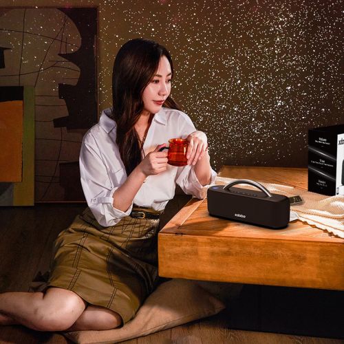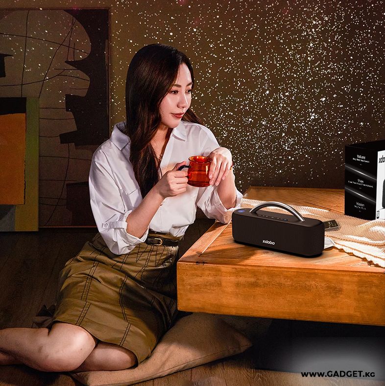 Xdobo Star жөн гана колонка эмес — бул чыныгы жарык шоу. Встроенный монитор жылдыздуу асманды имитациялап, уникалдуу атмосфера түзөт, жөнөкөй музыка угуу процессин башкача кылат. Музыканын ритми менен синхрондоштурулган жарык эффекттери мейкиндикти жумшак жарык менен толтурат, бул түнкү асманды жылдыздар менен толтурууга окшош. Бул уникалдуу артыкчылык Xdobo Star'ды кечелер үчүн идеалдуу тандоо кылат, ар кандай иш-чарага жандандыруу жана эксклюзивдүүлүк сезимин кошот. Мындай эффект космостук саякаттын атмосферасына чөмүлтөт, бул бир да конокту бейтааныш калтырбайт.