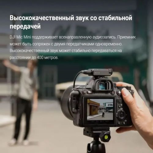 DJI Mic Mini бардык тараптан үн жазууну колдойт. Приемник бир эле учурда эки өткөргүчтөн сигналдарды кабыл алууга жөндөмдүү. Үн сапаты 400 метрге чейин жогорку деңгээлде калат.
