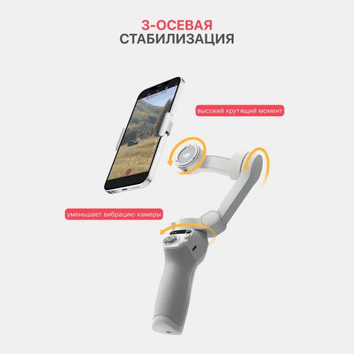 Курал жеңилдик менен сумкага батат жана салмагы болгону 352 грамм. Аккумулятордун запасы 8 саат автономдуу иштөөгө жетет, демек, ал сейилдөө же коммерциялык тартуу үчүн күндүн ичинде идеалдуу келет. Кармагыч 67-84 мм туурасындагы жана 10 мм чейин калыңдыгы бар смартфондорго ылайыктуу. Жогорку моменттүү бесщеточный мотор, стабилизатордун кичинекей жылыштарга жооп берүүсүнө мүмкүндүк берет, ал тургай чоң же оор смартфондор менен иштегенде.