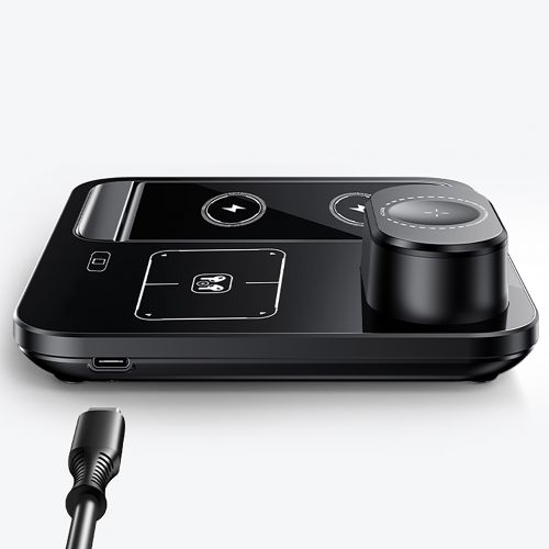 Заряддоо станциясы 3в1 Wireless Charger R13 үч туташтырылган түзмөктү бир убакта заряддоого мүмкүнчүлүк берет - зымсыз заряддоону колдогон смартфон, Apple Watch акылдуу сааты жана AirPods үчүн куту. Ошондой эле, ал смартфонду ылдам заряддоо мүмкүнчүлүгүн колдойт жана электрондук ачылуучу механизмге ээ. Сапаттуу материалдар, стильдүү дизайн, бекемдик жана орнотуунун жеңилдиги менен айырмаланат.