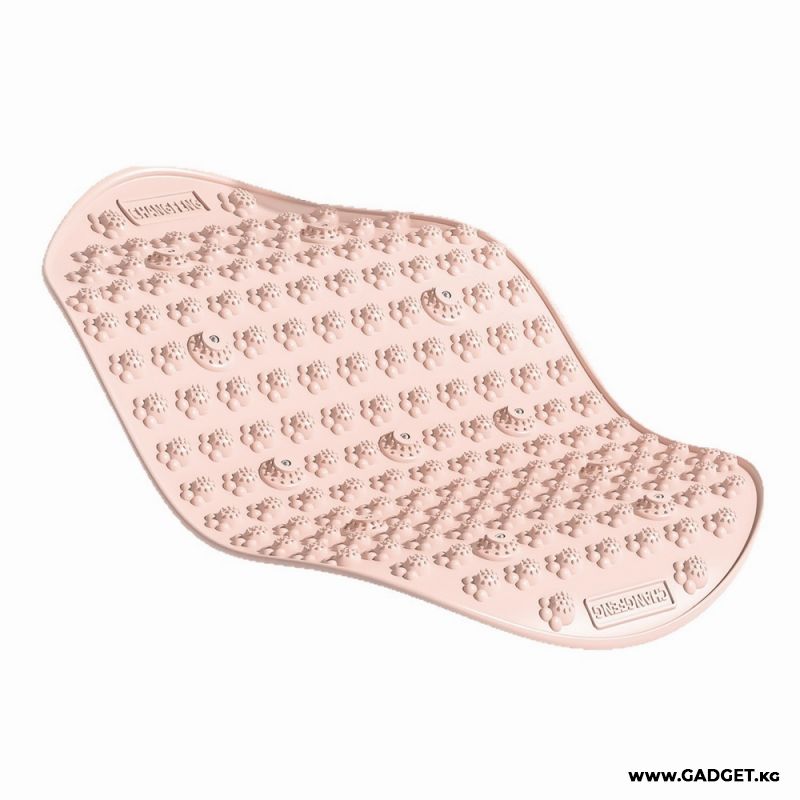 Поверхность коврика выполнена из мягкого жидкого силикона и содержит множество массажных выступов, обеспечивающих равномерное воздействие на рефлекторные точки стоп.