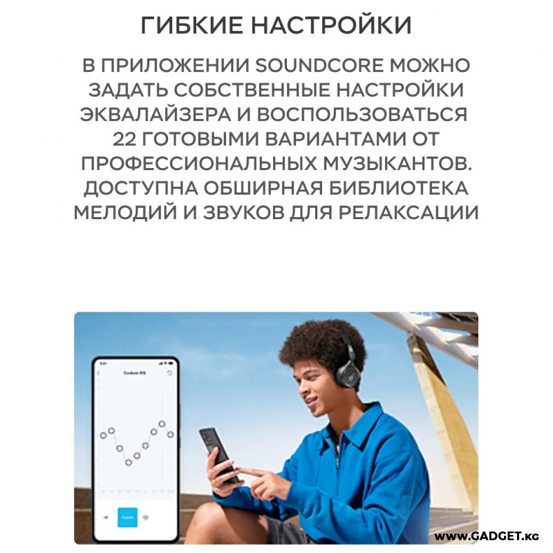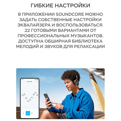 - Soundcore колдонмосу: теңшелүү жана алдын ала орнотулган эквалайзер параметрлери менен уникалдуу угуу стилин түзүңүз