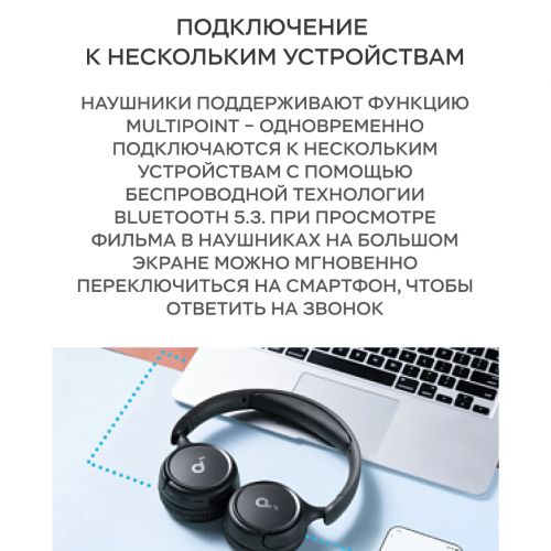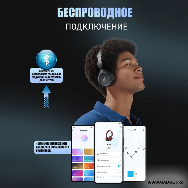 Soundcore H30i Bluetooth 5.3 менен жабдылган, бул автономияны жана байланышты кеңейтет.