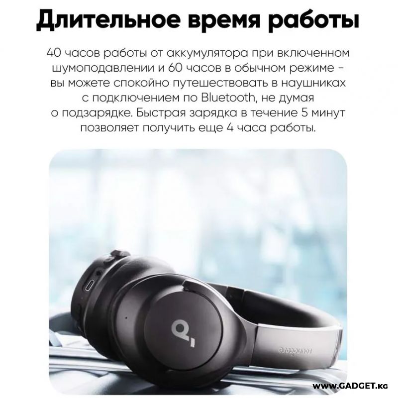 Бул наушниктер саякаттар үчүн идеалдуу шерик. Шумоподавление иштеп турганда 40 саатка чейин музыка угууга мүмкүнчүлүк берген батареясы жана өчүрүлгөндө 60 саатка чейин иштөө убактысы менен, сиз жаңы жерлерди изилдөөдө зарядка жөнүндө тынчсызданбайсыз. Ал эми 5 мүнөттүк тез зарядка наушниктердин 4 саатка чейин иштөөсүн камсыз кылат.
