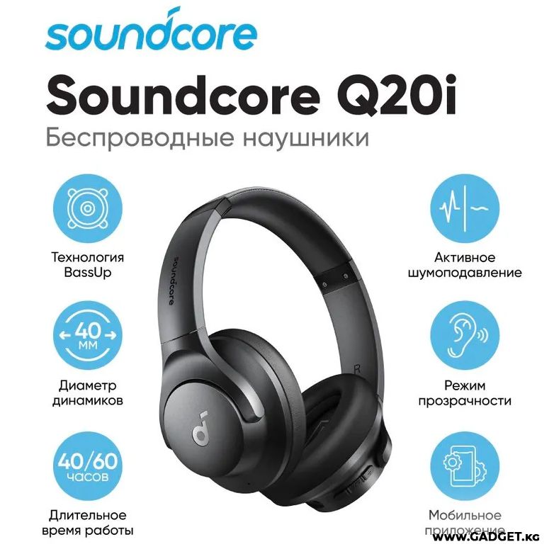 Anker Soundcore Q20i - бул инновациялык толук өлчөмдөгү бүктөлүүчү наушниктердин модели, алар үндү басаңдатуу технологиясы менен жабдылган. Бул наушниктер сизге каалаган шартта идеалдуу үн менен камсыз кылуу үчүн түзүлгөн. Гибриддик активдүү үн басаңдатуу технологиясы аркылуу алар 90% чейин каалабаган үндөрдү ишенимдүү тосуп, сизди музыка дүйнөсүнө же ызы-чууну азайтуу үчүн фокусун сактоого көмөктөшөт.