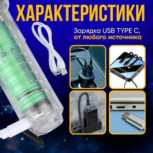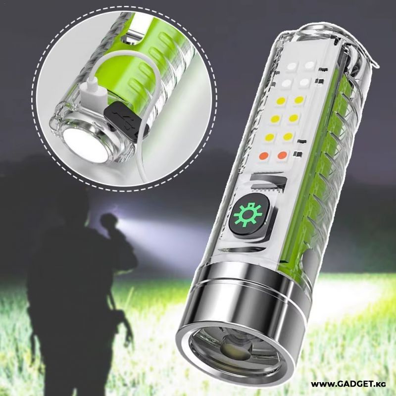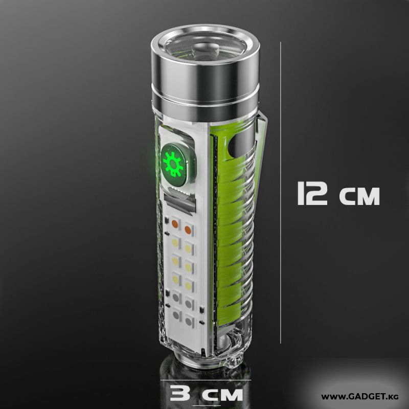 Компакттуу мини чөнтөк фонарик type-c заряддоо портуна ээ, кабель комплектте берилет. Заряддоо индикатору бар - кызыл заряддалып жатат - жашыл заряддалган. Туристтик саякаттар, кемпинг, балык уулоо, күнүмдүк милдеттер үчүн идеалдуу. Күнүмдүк колдонууга (EDC) мыкты тактикалык аксессуар.