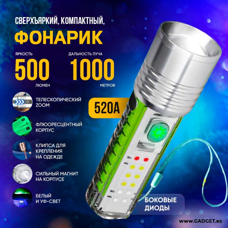 Фонарик Multifunctional Zoom Flashlight 520A