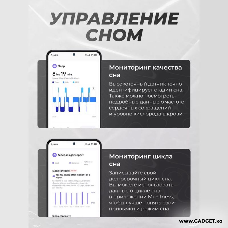 Стильдүү жана компакттуу смарт-сааттар Xiaomi Smart Band 9 жеңил салмакка ээ, билегиңизде дээрлик сезилбейт жана таң калыштуу матовый текстурасы менен айырмаланат. Стильдүү белектерди бир кыймыл менен алмаштырып, практикалык аксессуарды күнүмдүк образыңызга органикалык түрдө кошуңуз. Бул түзмөктүн жардамы менен сиз саламаттык абалыңызды көзөмөлдөп, спорттук прогрессиңизди байкай аласыз, ошондой эле түнкү эс алуунун циклин жана узактыгын контролдой аласыз. Устройство сизди негизги маалыматтарга көңүл бурууга жардам берет, анткени ал максималдуу персоналдаштырылган ОС менен жабдылган.