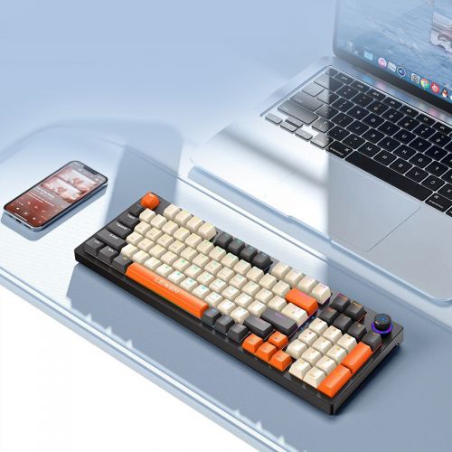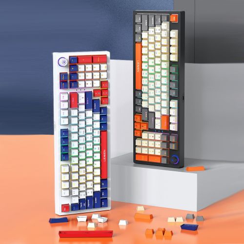 - 1. Компакттуу жана стильдүү дизайн: Leaven H96 клавиатурасы миниатюралык өлчөмдөргө ээ (96 символдук), бул аны каалаган столго оңой жайгаштырууга мүмкүндүк берет. Үч түстөгү кейкаптар сиздин иш столуңузга өзгөчө дизайн берет.