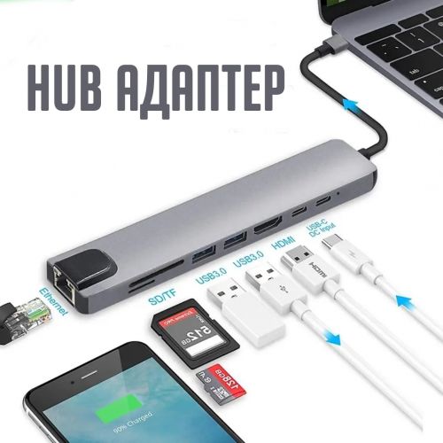 Адаптер-переходник Adapter 8 in 1 USB Type-C Hub