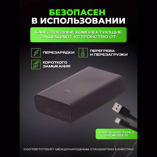 Универсалдуу Powerbank ылдам заряддоо функциясын (fast charge) колдойт, бул сиздин телефонуңузду үч эсе ылдам заряддоого мүмкүнчүлүк берет.