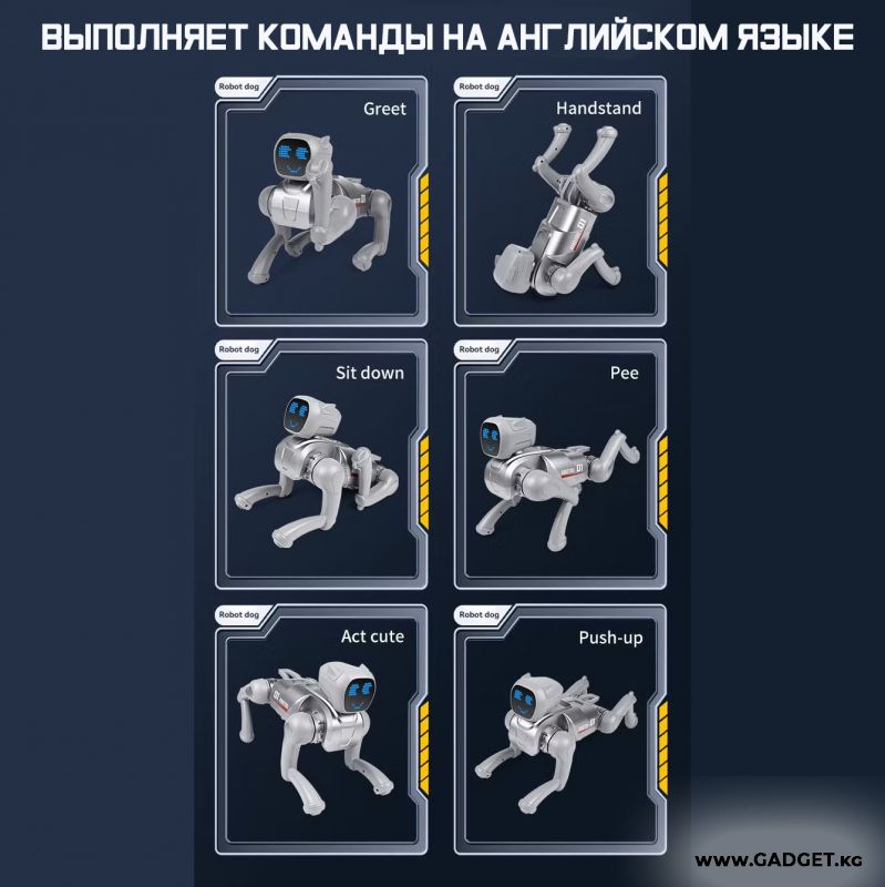 Интерактивдүү оюнчуктар жаңы муун, балаңыздын эң жакшы досу жана үй оюндарында жаркын каарман болот. Робот‑собака алыстан башкаруучу пульт менен жана смартфон аркылуу мобилдик колдонмо аркылуу башкарылат, англис тилиндеги үн буйруктарына жооп берет, LED‑дисплейде эмоцияларды көрсөтөт жана эффекттүү трюктарды аткарат.