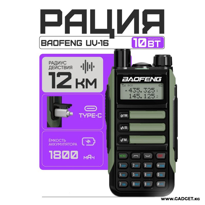 Baofeng UV-16 - рация оптимально подходящая как для бытового использования, так и в качестве средства связи для любителей активного отдыха, туристов и профессионалов. Функция программирования каналов с клавиатуры и широкий диапазон частот (VHF 136-174 МГц и UHF 400-520 МГц) позволяет использовать радиостанцию в различных условиях и местах. Отличительной особенностью рации является наличие разъема Type-C для зарядки устройства "напрямую" без стакана.