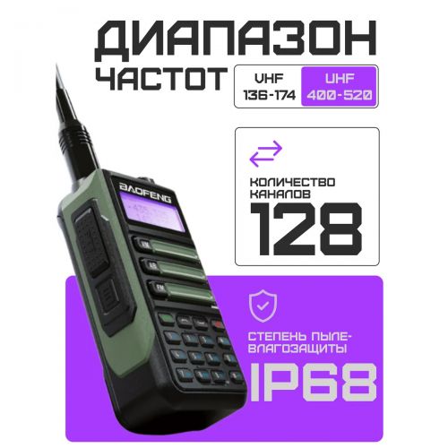 Рация позволяет одновременно принимать сигналы на двух различных частотных диапазонах, обеспечивая гибкость и удобство в общении, что позволит пользователю мониторить и отслеживать разные частоты.