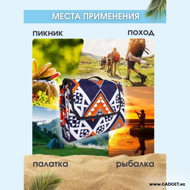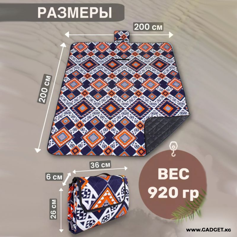 Жарқын жана ыңгайлуу коврик – табиятта жакындарыңыз жана досторуңуз менен эс алуу үчүн алмаштыргыс аксессуар. Ал пляжда жана деңиз, көл же дарыянын жээгинде ыңгайлуу убакыт өткөрүү үчүн гана эмес, универсалдуу пикник төшөгү, туристтик төшөк катары да колдонулушу мүмкүн: аны жөө жүрүү үчүн эс алуу үчүн алып кетүү оңой, коврик бүктөлгөн абалда сумкага оңой батат.