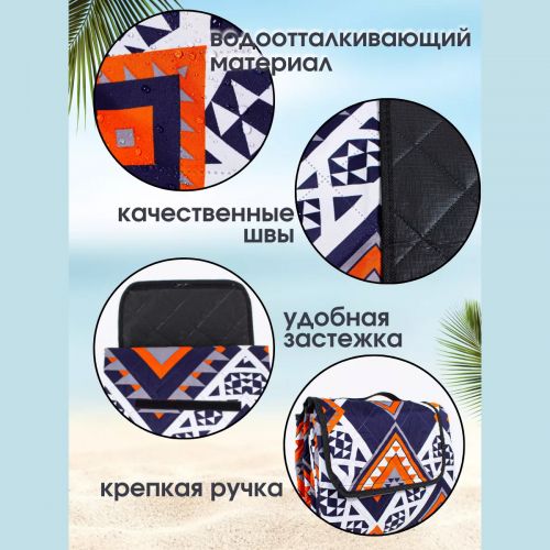 Бул кемпинг жана туристтик товар чоңойтулган же төшөк катары кызмат кыла алат, таза абада эс алуу үчүн ыңгайлуу орун түзөт. 200 на 200 см чоңдугу 6-8 адамдын отуруу үчүн ыңгайлуу эс алуусуна же 3-4 адамдын кумда, галькада, нымдуу чөптө же катуу жерге жатууга жетиштүү. Пляж ковриги жогорку сапаттагы материалдардан жасалган, үч катмарлуу конструкцияга ээ: тышкы катмары жагымдуу жана жумшак эпонж материалынан, ички катмары 60 гр/кв.м. тыгыздыктагы иглопробивной пахтадан, ал эми төмөнкү катмары суу өткөрбөйт жана кийимге чыдамдуу PEVA материалынан жасалган. Пледдин катмары ультрадыбыстагы туташтыруу ыкмасы менен бириктирилген.