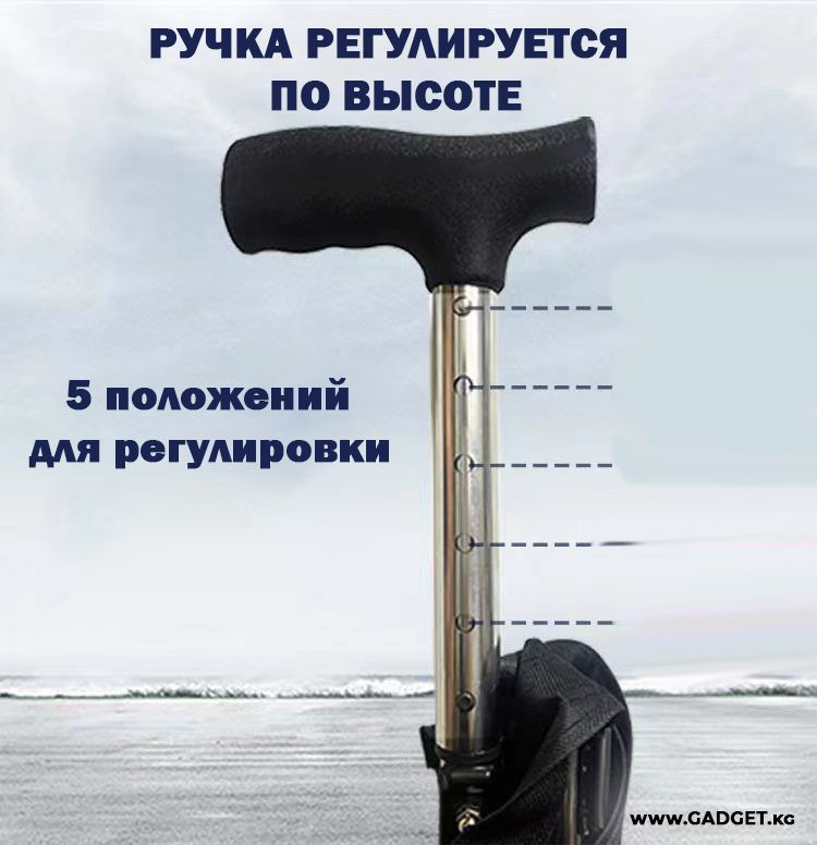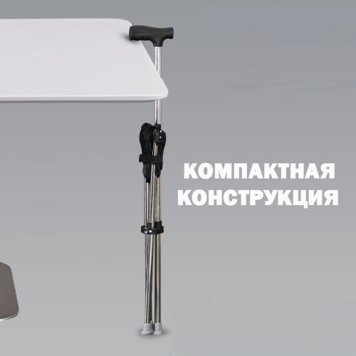 Таяк сапаттуу жана бекем металлдан жасалган, бул аны бир эле учурда бекем жана жеңил кылат. Сиз күн сайын сейилдөө учурунда таяктын салмагын сезбейсиз. Таяктын буттары резинадан жасалган, тайгалак эмес, жумшак резинадан жасалган опордук насадкалар менен жабдылган. Конструкция колдонуу учурунда ыңгайлуулук жана туруктуулукту камсыз кылат.