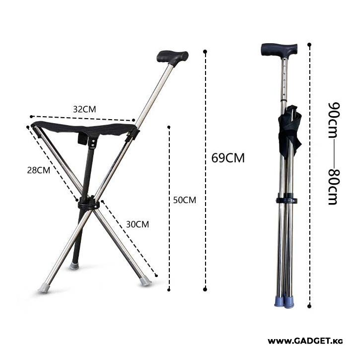 3 бутактуу отургучтуу жардамчы жөө жүрүү үчүн бүктөлүүчү таяк