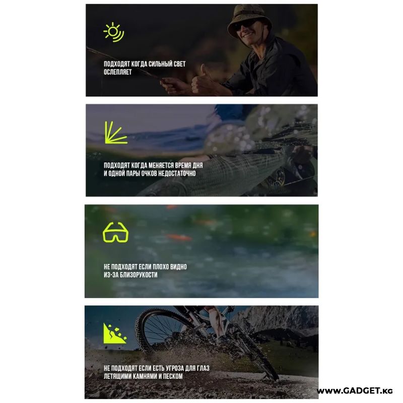 Өзүңүзгө ар кандай жагдайда максималдуу комфорт жана коргоону көп функциялуу солнцезащитные очки менен тартуулаңыз, булар ыңгайлуулук, стиль жана технологияны баалагандар үчүн жасалган. Бул көз айнектери ND9 алдыңкы фильтри менен жабдылган, ал линзалардын караңгылык деңгээлин кол менен жөнгө салууга мүмкүндүк берет, жарык шарттарында идеалдуу көрүнүштү камсыз кылат — жаркын түштүн күнүнөн тартып жумшак кечки жарыкка чейин.