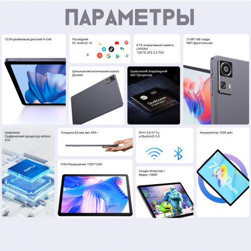 - Экран: 10.95 дюйм, FHD+, 1920 x 1200